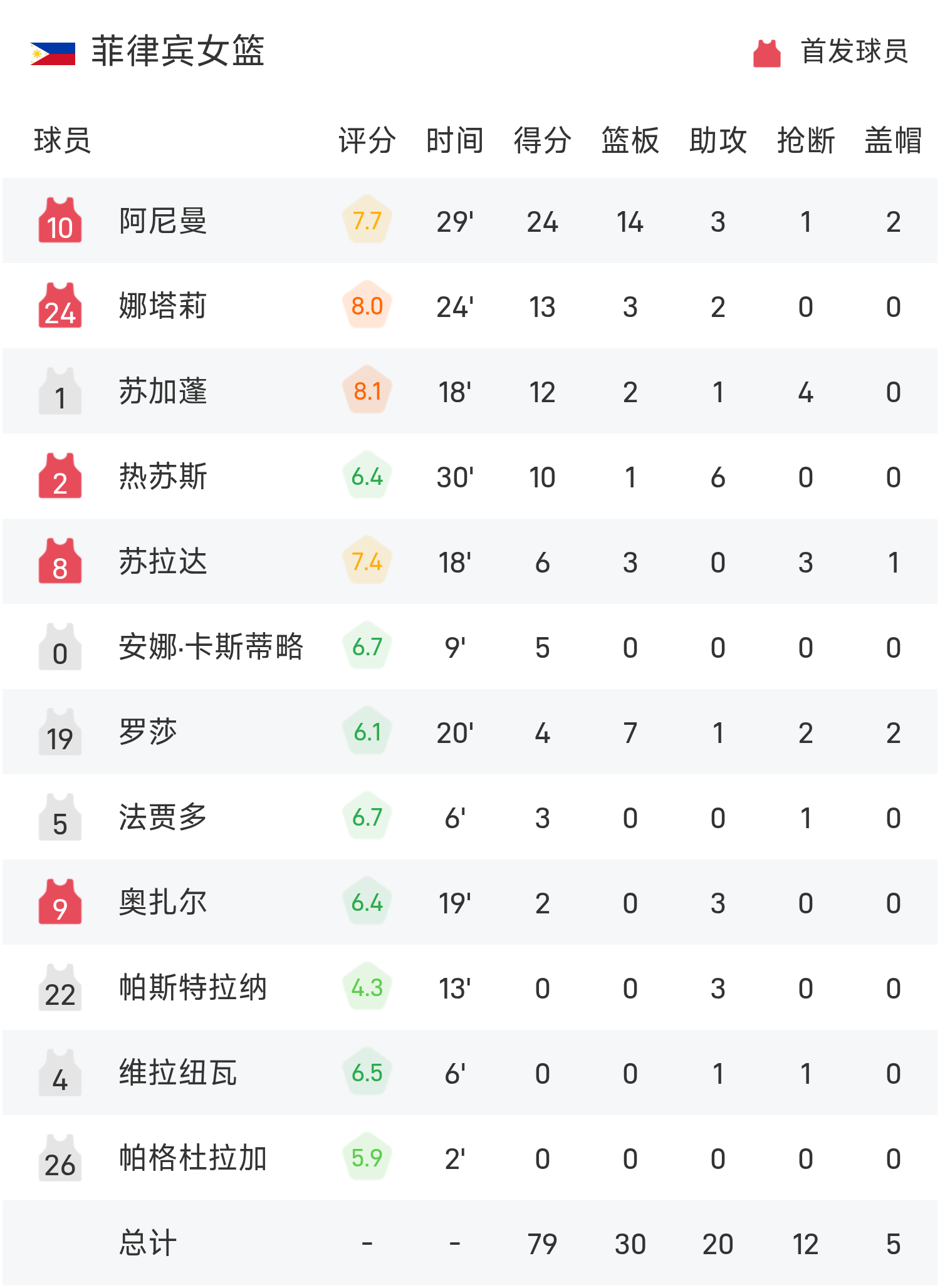 07月14日讯 25赛季女亚洲杯 小组赛,菲律宾女篮对阵日本女篮。双方全场战罢,菲律宾女篮82-85不敌日本女篮。高田真希得到20分3板1助率队取胜,阿尼曼空砍全场最高的24分14板3助。