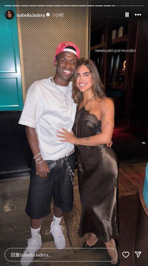 昨日,Isabella Ladera更新社媒,晒出她与维尼修斯的亲密合照。